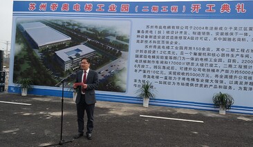 帝奧電梯總經(jīng)理薄建林作帝奧電梯工業(yè)園(二期工程)開(kāi)工典禮項(xiàng)目介紹。